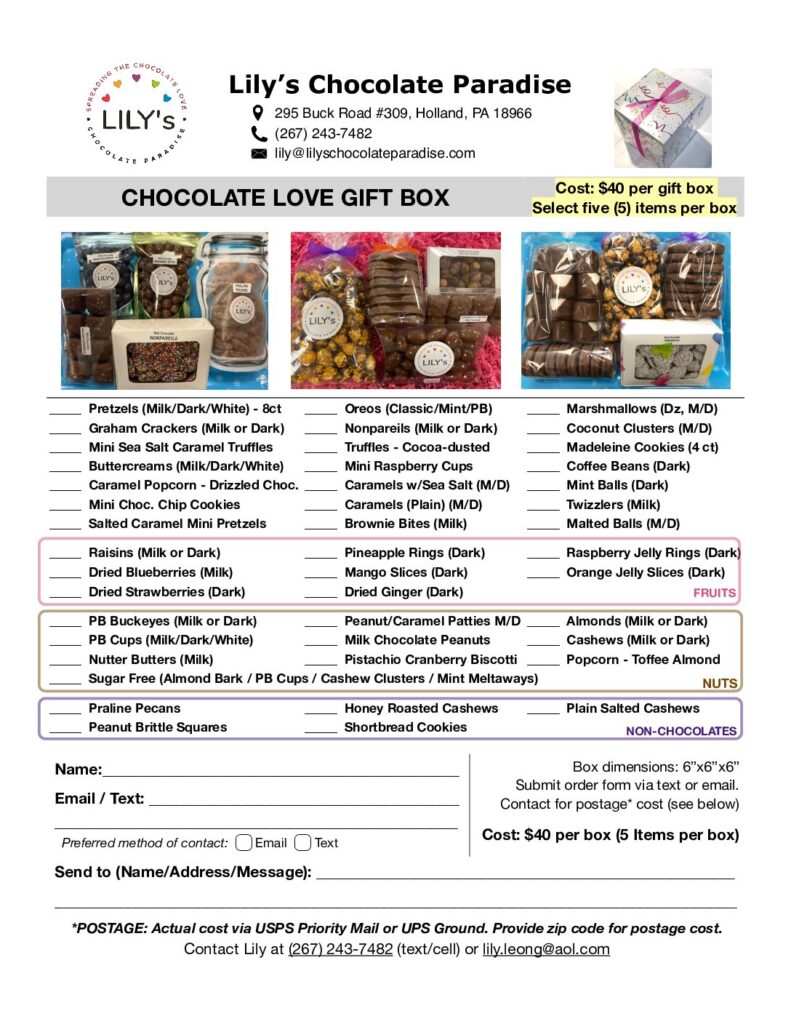 GIVE A GIFT OF CHOCOLATE LOVE – GIFT BOX ORDER FORM BELOW