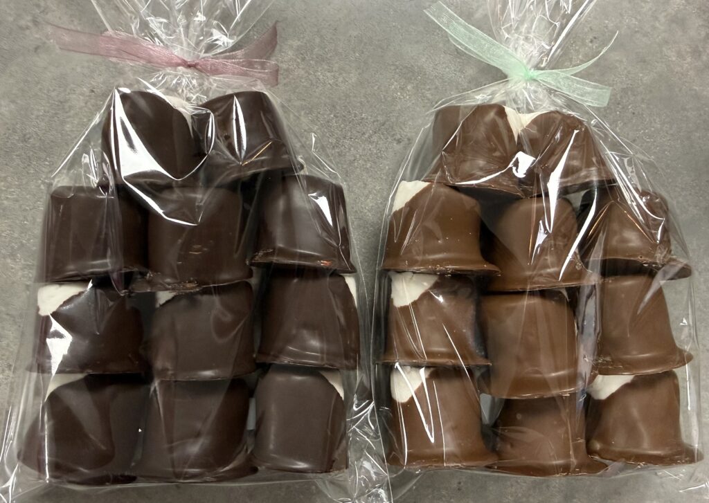 Milk Chocolate-covered Gummy Bears. $10 pint, $20 quart